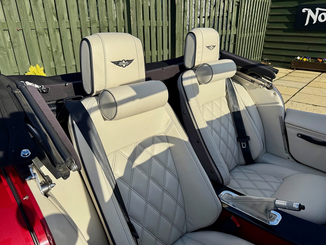 - Morgan logo embroidered headrest